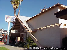 Check out the A-frame on this motel. See the tiki motel delights from Southern California here at Roadside Peek's Tiki Motels Southern California.