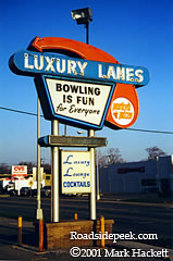 Here's a rather colorful sign at the Panorama Lanes. This bowling alley marquee is a great example of a roadside treasure that has fought the test of time. 10-05