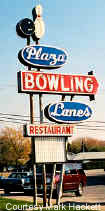 An example of the eye-catching signage of ten-pin alleys, the Plaza