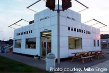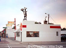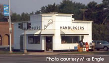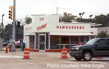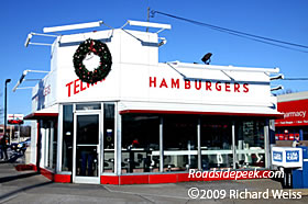 UPDATE 01/09 : Here's a newer shot of Telway Burgers taken in early January, 2009. The place was still decked out with a Christmas wreath hanging overhead. Many thanks to Richard Weiss for updated photo. 01-09