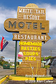This rather eye-catching somewhat rustic somewhat western looking sign is the marquee for the White Tail Resort in Brevort, MI. 12-08