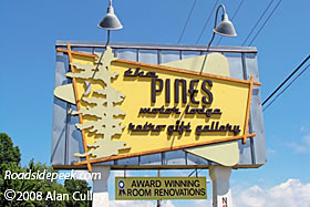 The Pines Motel is located in Douglas, MI, just across the Kalamazoo River. Although I don't think the sign is too terribly old, the motel is a 50's-60's mom and pop place and the sign was designed to resemble an older version. 12-08