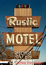 This marquee for the Rustic Motel befits its name. This marquee