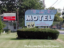 The marquee for the Missouri River Inn in Rocheport, MO comes