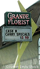 This old roadside sign sits outside of Grande Florist in Indianapolis,