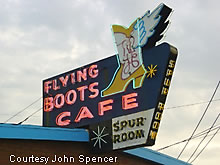 Here's a nice sign with an equally unique name. The Flying Boots