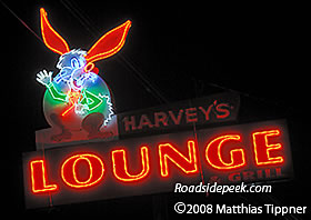 UPDATE 01/09 : The neon bunny still looks glowing and friendly at Harvey's Lounge in Seattle. Harvey's used to be called Harvey's Tavern instead of "lounge". 01-09