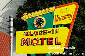 UPDATE 01/09 : Here's an updated shot from Fall 2008 of the Klose-in Motel sign sporting a freshened up paint scheme. Many thanks to Matthias Tippner for update. 01-09