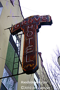 Check out this marquee for the Grove Hotel, found in Portland, OR. The hotel was built in 1910 and was sold to the City after years of neglect. 06-10