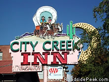 The City Creek Inn features a marquee that remains a roadside