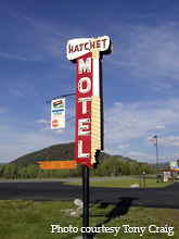 Here are a couple of marquees advertising the Hatchet Motel in Moran, WY.