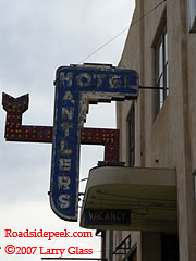 This old sign sits outside of the Hotel Antler in New Castle, WY. 12-07