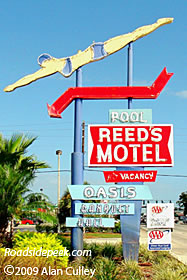 UPDATE 02/09 : (Left) Here's a photo of the Reed's Motel sign. This motel looks like a gem of a mom and pop type of motel. This is the restored sign after it received the storm damage described above during the 2004 hurricane season. Many thanks to Alan Culley for update. 02-09