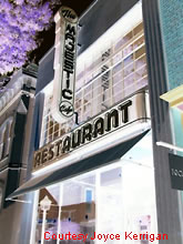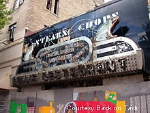 across there marquee. The defunct eatery is part of a row of boarded buildings