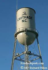 To the near left is the water tower that is found the North Carolina town of Carthage. 12-07