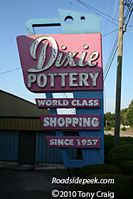 The Dixie Pottery in Wytheville, VA still appears to feature original signage which the shapes and colors that date it back to decades past. 11-10