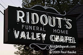 Ridout's Funeral Home and this fully lit neon sign is a funeral home located in Homewood, a suburb of Birmingham. 04-09