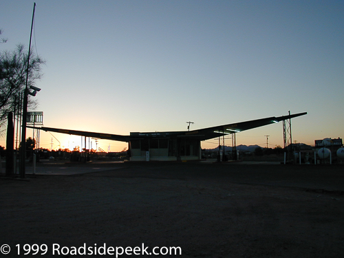Unfortunately this gem is no longer sitting alongside the road is Tucson. After being painted black years later the whole structure is gone similar to many of the roadside businesses that used to do the old Benson Highway. 07-22