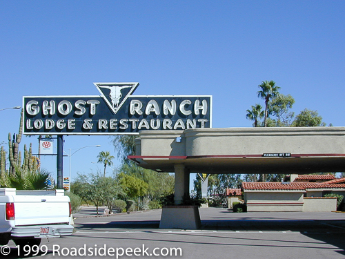 UPDATE 03/06 : The Ghost Ranch Lodge closed down in 2005 to become senior housing. Not sure of the fate of the grand neon sign. 03-06