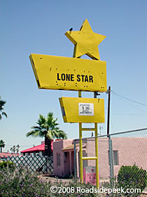 The Lone Star Motel used to show off its star along the main route in Phoenix before the interstate. Located at 3707 E Van Buren St, the Lone Star and its sign were quite the eye catching sight drawing in motorists looking to get a nights of rest before continuing on through Arizona. Well, the star no longer shines here as all that remains is a dusty empty lot going on over 10 years. 11-20