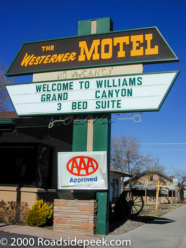 Visit Williams, AZ and the old Route 66 in town, you will come across the Westerner Motel on the left side of the street as you head east. The Westerner Motel still looks pretty much the same these days as it did back when this photo was taken. 09-21