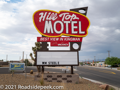 Here's the recent shot of the HIll Top Motel sign taken in 2021. It wa good to see the sign in great condition. The sign was completely redone.