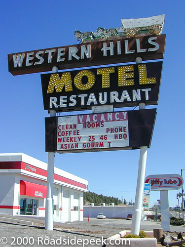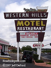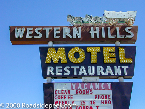 The Western Hills Motel sign in 2000 Photo by RoadsidePeek.com