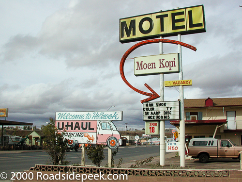 Holbrook like many of the towns off the Mother Road has changed and unfortunately many of the signs are now gone. The Moen Kopi is now just a memory. 09-21