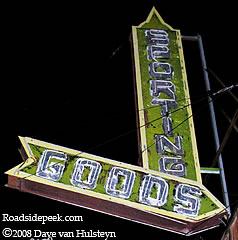 This old sporting goods sign still dots the roadside in Lone Pine. Located along Highway 395, which is the main highway going through town, this sporting goods sign is a relic from the days when signs like these were quite common in roadside towns. 09-08