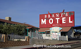 The rather large and red marquee for Brant's Motel is an eye-catcher of a sign in its own right for travelers passing through the town of Barstow. Whether on their way too and from Las Vegas or Route 66, the Brant's Motel is a familiar sight to any msotorist familiar with the main drag of Barstow.