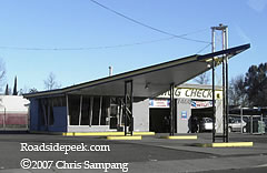 This former gas station and now auto shop near the Pancake Circus in the Tower District of Sacramento features the Phillips 66 design. 03-07