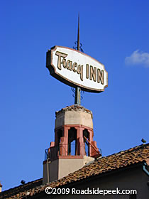 (Far left) A closer look a the signage on top of the roof of the Tracy Inn