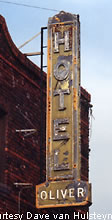 Hotel in Oakland. These rooftop signs on deco buildings were