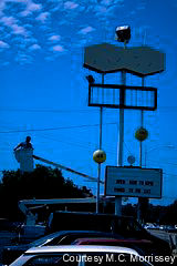 of the Topsy's marquee's last day. Its last day standing guard over its