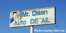 This rather humorous sign featuring a Mr. Clean is located