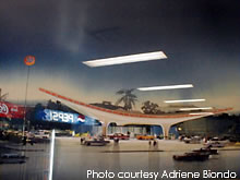 (Top) Here's a look at the mural inside the gas station with a rendering of