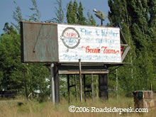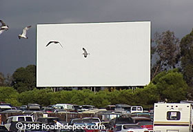 Check out the multi-colored sign that draws motorists in to either the swap meet or open air movie.