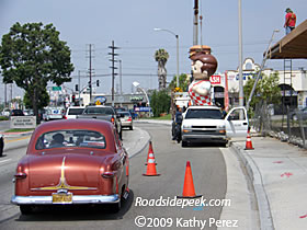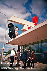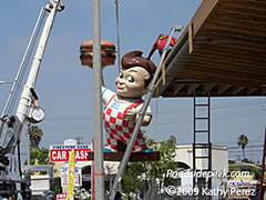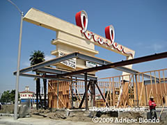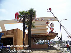 Work continues on the marquee Check out the Bob's Big Boy statue showing off the famous double deck hamburger. Bob Below are many more photos taken on May 22, 2009. Many thanks to Adriene Biondo for the continual updates from the site and for these photos.