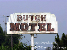 Redlands, CA is home to the Dutch Motel. Check out this roadside sign for the Dutch; a simple sign but an example of an old motor court sign. . The neon lettering on this marquee may or may not still glow off the roadside at night.