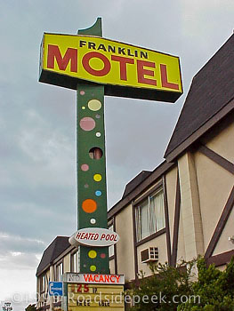 Check out both sides of the Franklin Motel sign. The motel used to be located next to a car wash.