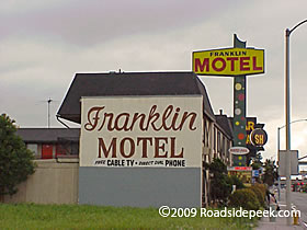Here' s another photo of the Franklin Motel. The motel sign is painted on the side of the motel building. As you can see, the spotted coloring on the sign was a real eye catcher from the boulevard.