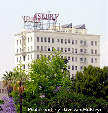 Near MacArthur Park in Los Angeles is the Asbury Apartments. The rooftop sign calling out the Asbury can be seen for blocks like many of the other hotel and apartment building signs in the area.