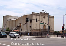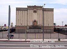 Since the photo to the left was taken, the Golden Gate Theater lot has been cleaned up. The dirt leveled and black top added; chain-link fence removed and a rod-iron fence added; and some stores were built on the west side of the lot on Whittier Blvd. In regards to The Theater itself, roofers repaired the roof. Many thanks to Timothy G. Shubin for update. 09-06