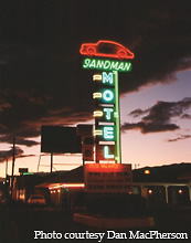 Here's a neon shot of the Time Zone Motel and its fancy depiction