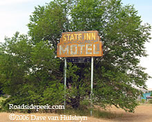 With a name guaranteed to make weary travelers get tempted to turn in for the night, the Big Pillow Motel features a sign with dreamy colors. Wells, NV.
