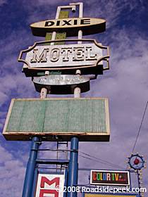 UPDATE 11/20 : To the far right is another angle of the Dixie Motel sign. The motel and it's sign were demolished about a decade ago. All that is left here is an empty lot.