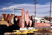 In the front is a discarded sign from the El Portal in downtown. What's