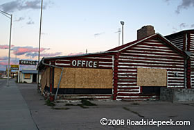 Here are more photos of the Log Cabin Lodge that used to grace Route 66 in Gallup. The photo below reflect the motel office all boarded up and awaiting its eventual fate with a bulldozer. There is also a photo of the Log Cabin Lodge in what likely was its last winter snowfall.