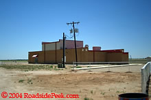 (Near left) The fence and screen tower at this still open Lubbock, TX drive-in theatre