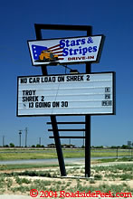 (Far left) Check out the bronco head at this old drive-in as it faces the main street through town